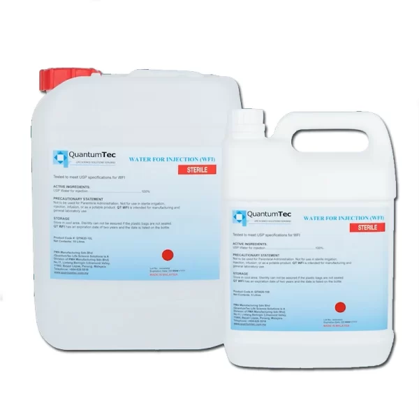 QT Water for Injection (WFI) is produced in an ISO 9001, ISO 13485 certified and FDA registered facility using potable water which is subjected to extensive purification with 2 reverse osmosis passes and final filtration of 0.1μm. This process provides water quality that meets the United States Pharmacopeia (USP) specifications for WFI.